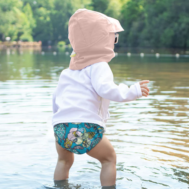 Protege a tu bebé del sol con nuestro sombrero de poliéster reciclado, ligero y de secado rápido. Con cobertura total para cabeza, cuello y hombros, bloquea el 97,5%-99+% de los rayos UV gracias a su UPF 50+.
